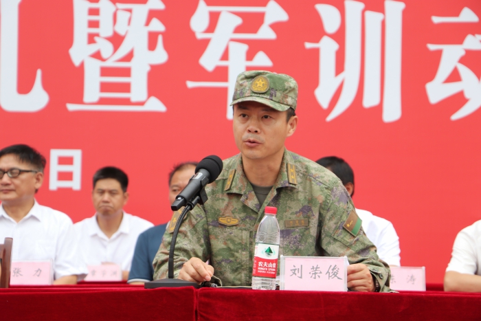 劉榮俊副部長在軍訓動員講話中強調,軍訓是大學教育的重要一課,希望新生們嚴守紀律,磨礪意誌,強化團結協作,提升集體意識,增強愛國情懷。