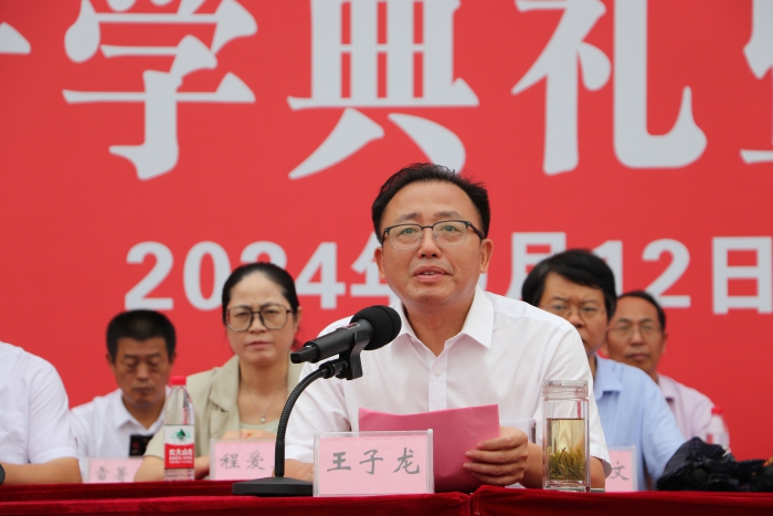 王子龍在致辭中代表學校向來自五湖四海的新同學們致以最熱烈的歡迎,勉勵大家在新的起點上,秉承學校百年曆史的深厚底蘊,以嶄新的姿態迎接未來的挑戰,並對新生提出三點希望:一要熟悉校史校情,厚植愛校情懷。學校從1904年辦學到今天,走過了120年的發展曆程,培養了畢業生2萬多人,社會培訓8萬人,各類人才在不同行業發光發熱。學校獲批安徽省“雙高”計劃建設單位,小學教育專業群獲批安徽省特色培育專業群。學前教育專業是全省高職高專第一個,也是唯一一個通過教育部師範專業認證的專業。學校診改複核四個顯效六個有效通過省專家組考評。順利通過辦學條件達標評估。招生區域擴大至9個省,招生規模逐年增加,招生計劃100%完成目標。與安慶師範大學開始專升本聯合培養,開啟本科辦學;與俄羅斯阿爾泰國立大學、葉列茨基國立大學簽署合作辦學協議,開啟國際合作辦學新篇章;每年舉辦全國性桐城派學術研究活動,受到中國社會科學院肯定。學校辦學規模、辦學條件、辦學層次、辦學質量明顯提升。希望同學們在學校厚重曆史文化的熏陶中,厚植愛校情懷,啟智潤心,學有所成,為學校高質量發展注入你們青春的力量,成為新時代桐城師專的代言人。二要精進學業專業,規劃人生目標。在剛剛畢業的2024屆學生,整體就業率達到95%以上。其中有764人成功升本,繼續在高等學府深造,升本率高達57.3%,同宿舍全員整體上岸者比比皆是,錄取人數和升本率均創曆史新高。習近平總書記指出:“新時代中國青年要練就過硬本領。”希望大家在接下來的三年,珍惜時光,求知問學,增長見識,豐富學識,沿著求真理、悟道理、明事理的方向前進,錨定人生目標,規劃好專業發展。無論是選擇師範教育類專業,還是選擇契合新興產業和未來產業發展的非師範類專業,在這裏,經過三年學習,相信同學們會成為高素質技術技能人才,成就美麗青春。三要堅持五育並舉,涵養健全人格。《中共中央 國務院關於弘揚教育家精神加強新時代高素質專業化教師隊伍建設的意見》出台,師範類院校迎來新的發展機遇。習近平總書記指出,“提高教師政治地位、社會地位、職業地位,加強教師待遇保障,維護教師職業尊嚴和合法權益,讓教師享有崇高社會聲望、成為最受社會尊重的職業之一。”“培養德智體美勞全麵發展的社會主義建設者和接班人”。希望同學們在大學三年裏,堅定理想信念,厚植愛國主義情懷,加強品德修養,增長知識見識,培養奮鬥精神,增強綜合素質,五育並舉,健全人格,快樂學習,健康成長。在美好的青春年華展示青年的朝氣與活力,實現“桐師三年,奠基一生”。