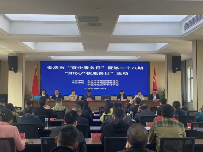 為深入學習貫徹習近平總書記考察安徽時提出的“加快科技創新和產業轉型升級”的重要指示精神,著力發揮知識產權在提升和保護原始創新能力、發展新質生產力和實現高水平科技自立自強等方麵的支撐性作用,10月30日上午,“宜企服務日”暨第二十八期“知識產權服務日”活動在桐城市市場監督管理局舉辦。此次活動由安慶市市場監管局主辦,桐城市市場監督管理局和桐城師範高等專科學校承辦,安慶市市場監管局黨組成員、副局長金鑫出席活動並講話,桐城市30餘家企業和部分服務機構受邀參加活動。說明:61ff65f96ba590619ed738ce588ee6d
