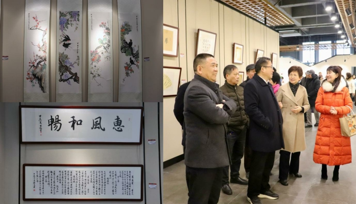 開幕式結束後,與會人員共同觀摩了書畫作品展。