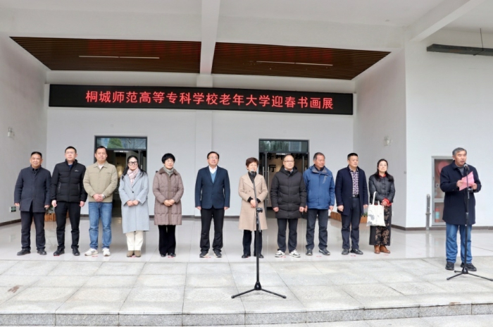 翰墨飄香迎新春,丹青溢彩繪新篇。3月4日上午,桐城師範高等專科學校老年大學迎春書畫展開幕式在校美術廳正門前廣場舉行,黨委書記、校老年教育工作委員會主任王子龍,黨委副書記張敏麗,副校長程玉梅,黨委委員、宣傳部長伍建強及學校老年教育工作委員會成員單位負責人、老年大學教師代表、學員代表、藝術與設計係學生代表等參加開幕式。王子龍為迎春書畫展揭幕,張敏麗致開幕詞。開幕式由老年大學校長梁誌斌主持。說明:438646577833188777