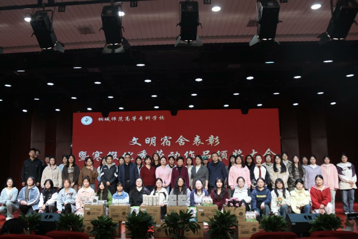 為進一步弘揚勞動精神,營造積極向上的校園勞動文化氛圍,表彰先進典型,3月27日,由學生處主辦,“六尺·禮讓”輔導員工作室和勞動教育“三元課堂”體係建構與實踐課題組共同承辦的文明宿舍表彰暨寒假優秀勞動作品頒獎大會在校音樂廳隆重舉行。學校黨委副書記張敏麗出席大會並講話,校團委書記、學生處負責人汪若冰,各係分管學生工作負責人,校大學生自律委員會代表,各係學生代表和獲獎學生代表共200餘人參加大會。大會由學生處副處長陶功勝主持。