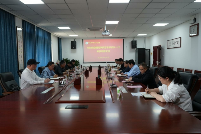 王子龍首先對蘇本躍一行的到來表示熱烈歡迎,他介紹了學校的發展曆程、辦學特色以及近年來取得的成績。他指出,銅陵學院在辦學治校上有很多先進經驗和創新舉措,兩校地緣相近、人緣相親,希望雙方在學科建設、人才培養、科研轉化、社會服務等方麵全麵深化合作。
