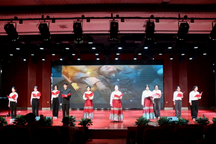 最後,學生們朗誦《請黨放心,強國有我》,以青春之名莊嚴承諾“以奮鬥為筆,以信仰為墨,書寫強國篇章!請黨放心,強國有我!”為本次匯演畫上圓滿句號。