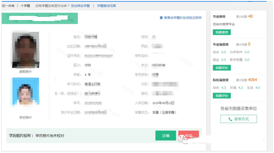 2、學生在圖像信息校對過程中如發現學曆電子圖像或學籍信息有誤的,請學生本人持學生證到教務處辦公室二(以智樓502室)進行登記處理。