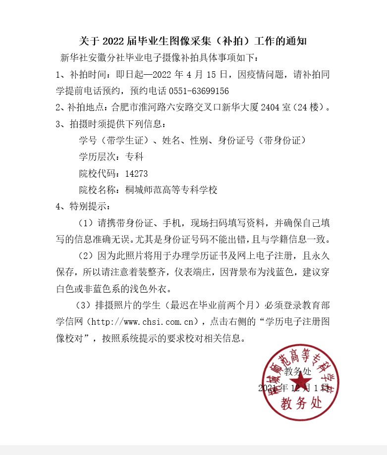 關於2022屆畢業生圖像采集(補拍)工作的通知