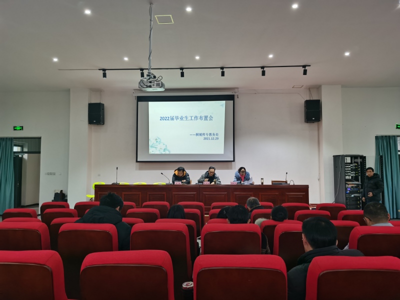 12月29日下午4點,教務處在其昶樓報告廳召開2022屆畢業班工作布置會。教務處處長黃洪沫、教務處副處長程愛蘭、學生處副處長周琳出席會議,各係頂崗實習工作小組成員、畢業班輔導員參加會議。會議由教務處處長黃洪沫主持。
