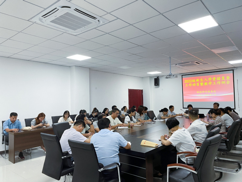 9月8日,教務處在明德樓第三會議室召開2022級新生入學資格核查工作動員會暨教學工作例會。招生就業處、監察審計處、學生處、總務處、保衛處等部門負責人、各係主要負責人和分管教學的副主任以及教學秘書參加了會議。會議由教務處處長程愛蘭主持。