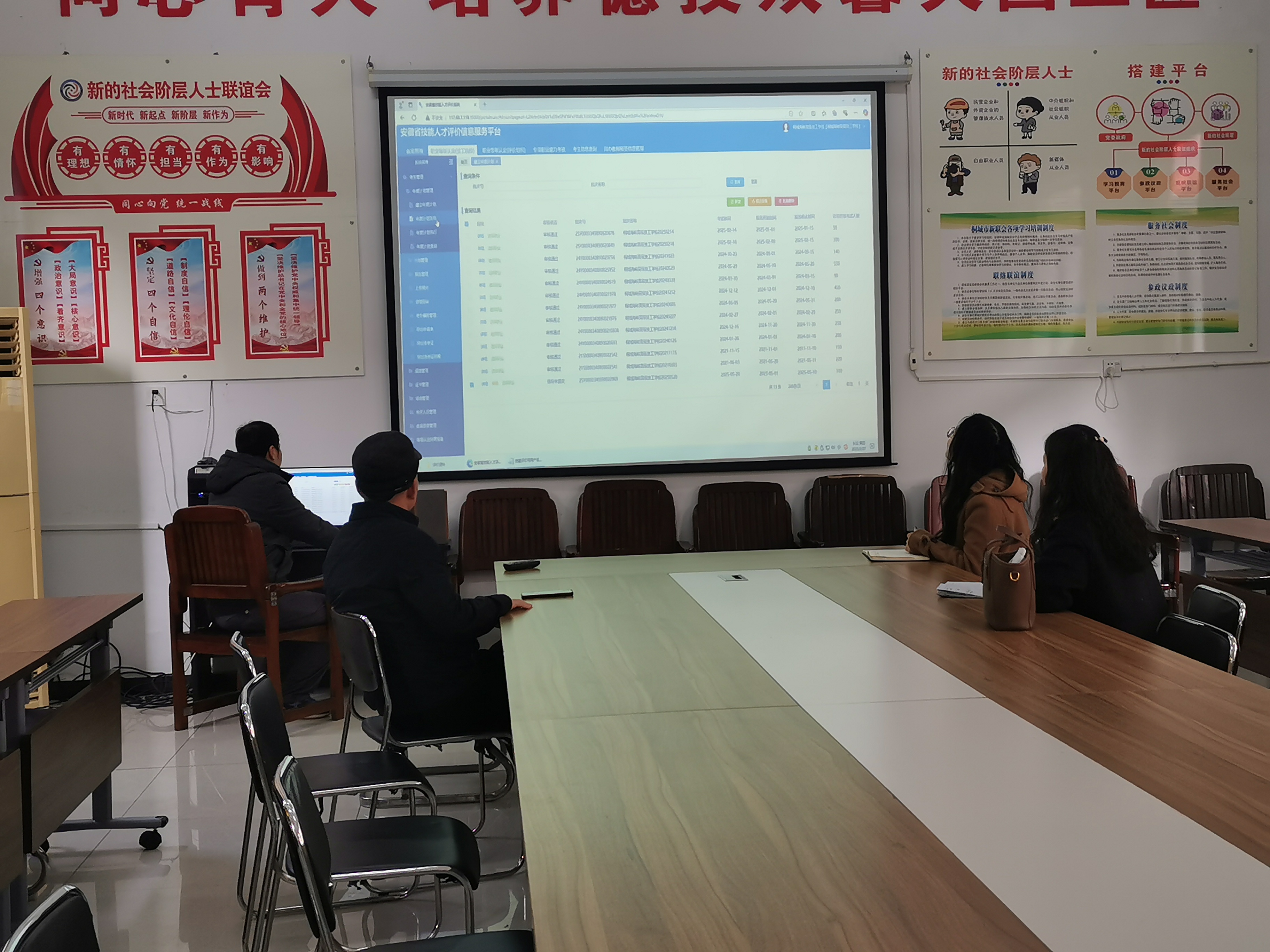 胡勇主任詳細講解了安徽省技能人才評價信息服務平台的各項功能與操作流程,針對常見問題與操作難點進行了重點剖析,並通過實際案例演示,讓各項流程更加直觀易懂。我校教務處人員認真聆聽,與胡勇主任就平台在實際使用中遇到的問題展開討論,現場學習氛圍熱烈。