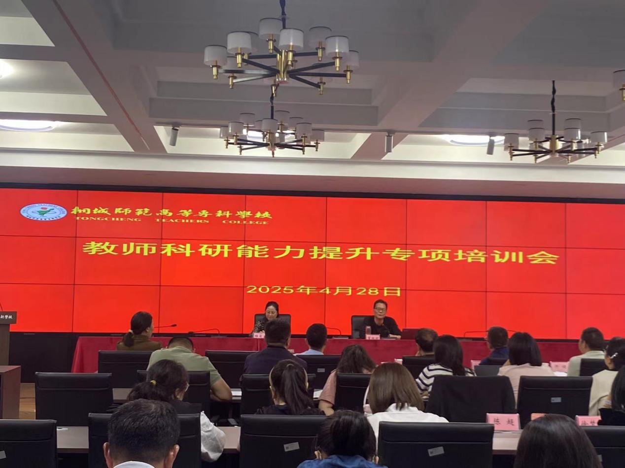 為進一步提升我校教師科研能力,推動高層次科研項目申報工作,4月28日,學校在明德樓二樓學術報告廳舉辦科研能力提升專項培訓會,邀請安慶師範大學教授董根明來校進行高水平項目申報專項指導。學校各院係主任、分管教學副主任、教科研項目主持人、參與人及近三年新進教師參加培訓。培訓會由教務處處長程愛蘭主持。