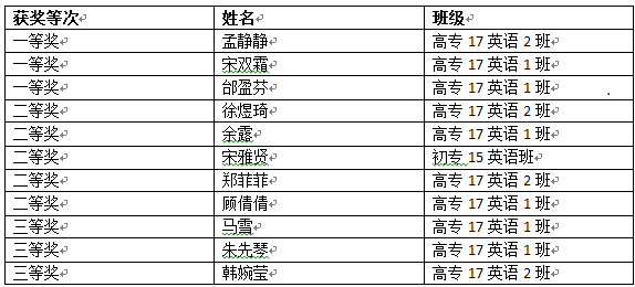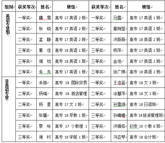 英語教育專業師範生課堂教學技能大賽獲獎名單