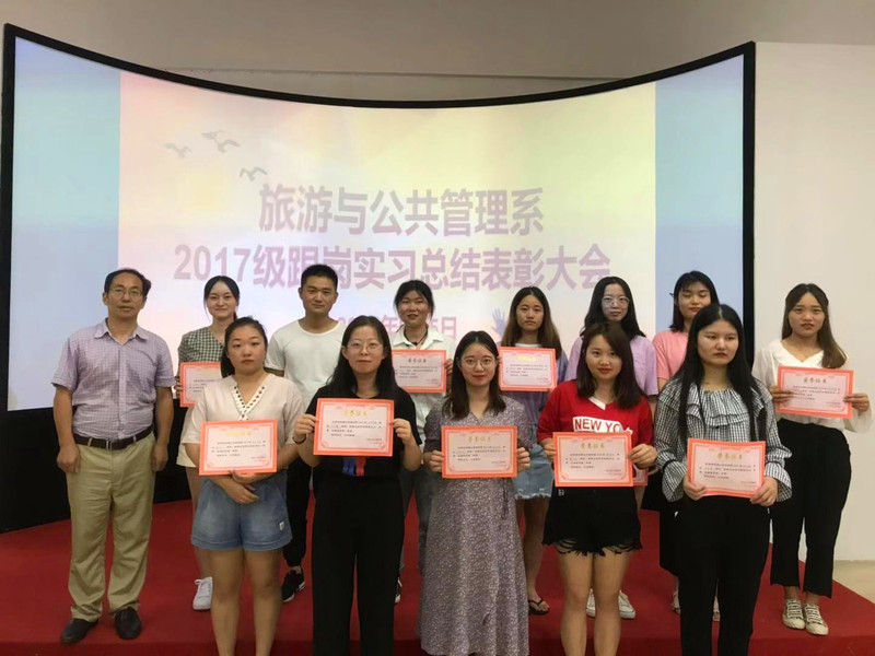 95日,旅管係在毓秀樓實訓室隆重召開2017級旅遊類專業跟崗實習總結表彰大會。2017級旅遊類專業全體實習生和指導教師參加了會議。會議由係主任汪庭才老師主持。