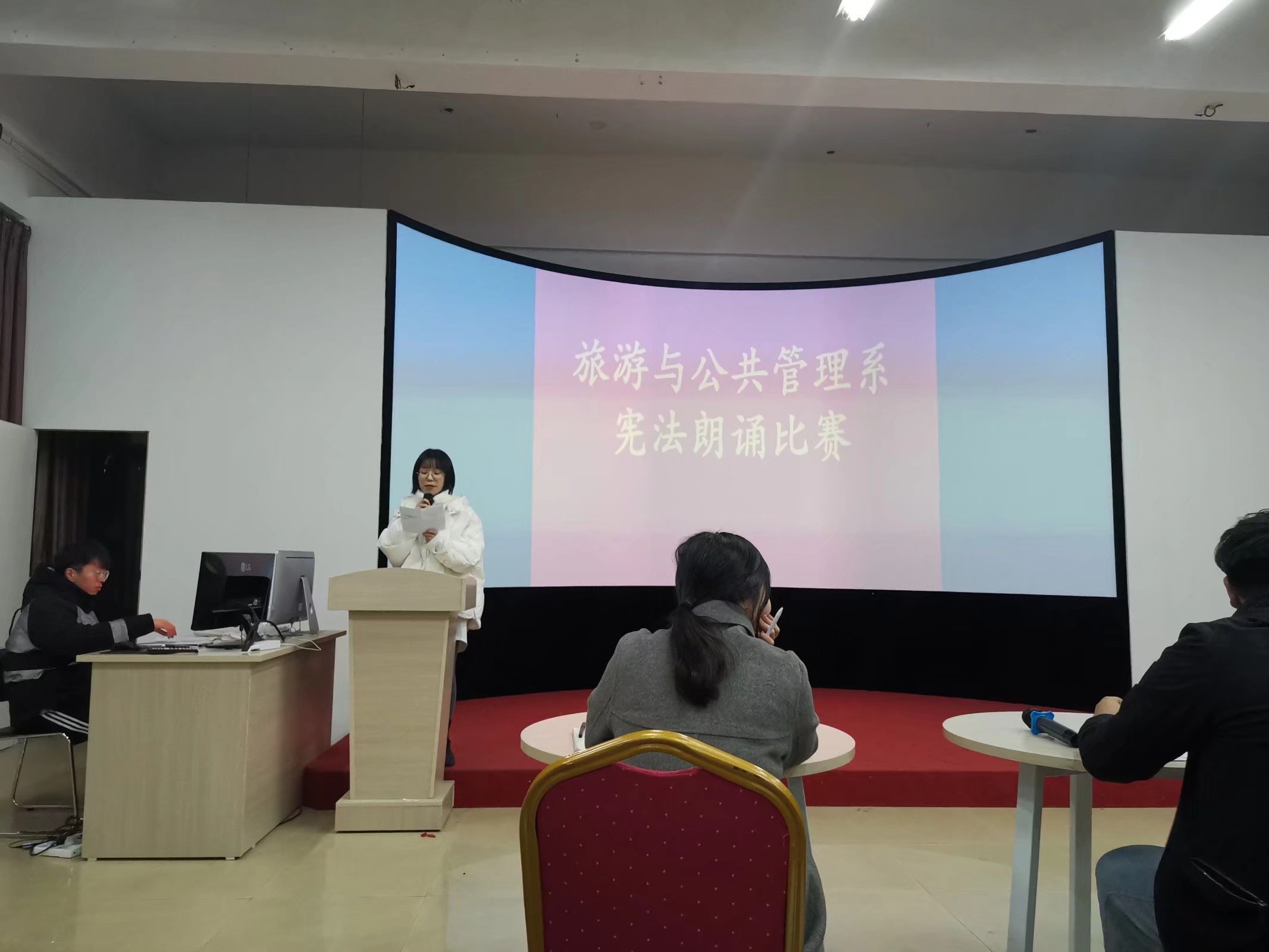 2019年12月9號晚上6.30,桐城師範高等專科學校旅遊與公共管理係在A601開展了憲法朗誦征文比賽。
