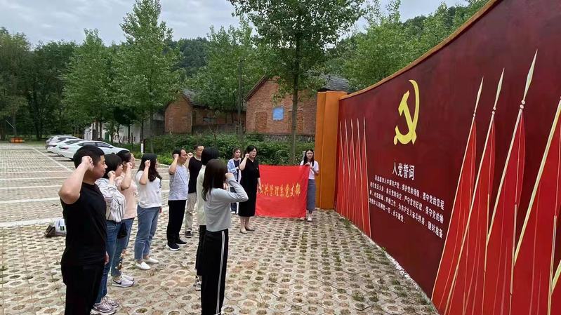到達葉家灣後,剛剛轉正的兩位黨員湯慧玲、高閩同誌在黨徽的見證下,莊嚴舉起右手進行入黨宣誓。作為見證人,其他黨員也一起重溫了入黨誓詞。