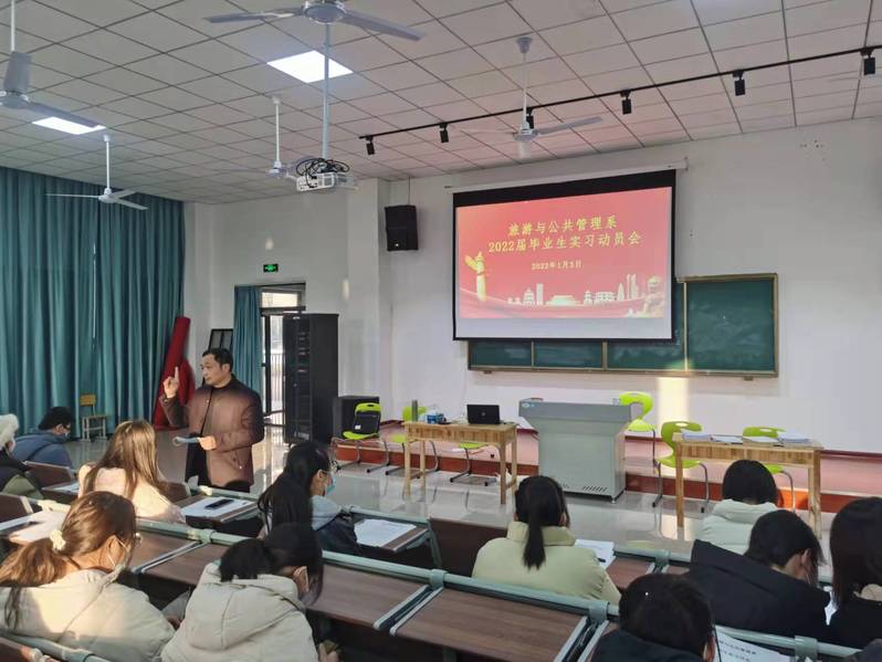 1月3日下午,旅遊與公共管理係在以智樓報告廳召開了2022屆畢業班頂崗實習動員會,全係2022屆畢業班在校生、輔導員參加了動員會。動員會由汪青老師主持。