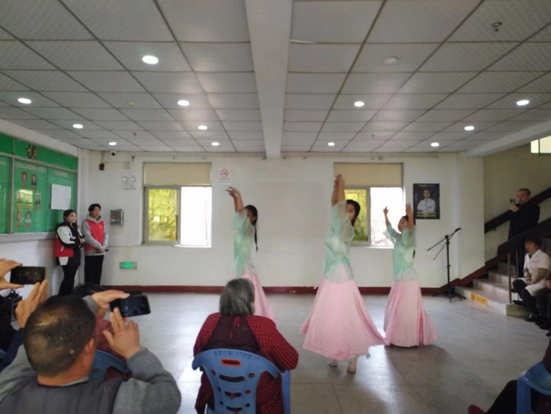 誌願者們走進敬老院,為老人送上準備好的慰問品,詳細詢問老人的生活情況和身體狀況,認真聆聽老人的心聲,並為老人們帶來了精彩紛呈的節目表演:歌曲《南泥灣》、中國舞《萬疆》、黃梅戲《打豬草》《女駙馬》串燒、朗誦《我的祖國》、手風琴《我為祖國守大橋》、二胡《女兒情》、相聲《父與子》、現代舞《小搖船》、大合唱《歌唱祖國》。精彩的表演贏得了在場老人的陣陣掌聲,福利院內處處洋溢著溫馨、祥和的氣氛。