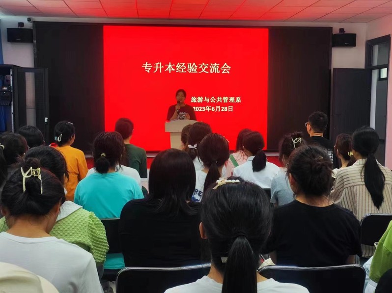 628號下午,旅管係在旅遊實訓室舉辦專場專升本交流會。高專20英語張越等同學和21英語、高鐵、22 英語等專業的近100位同學進行了麵對麵的交流。學姐們從專升本輔導機構的選擇、周末公共課的學習、寒暑假專業課的集訓、考前衝刺等環節和學弟學妹們進行了深入細致的交流。她們還解讀了如何從心裏上,身體上和專業上備戰專升本,如何度過備考的“高原期”。在場的同學們還就自己關心的專升本相關問題向學姐們取經。交流會現場氣氛熱烈,準備專升本的同學情緒高漲,信心滿滿。紛紛表示向學長學習,勤奮學習,積極科學備考,爭取早日上岸,不負青春,不負韶華。