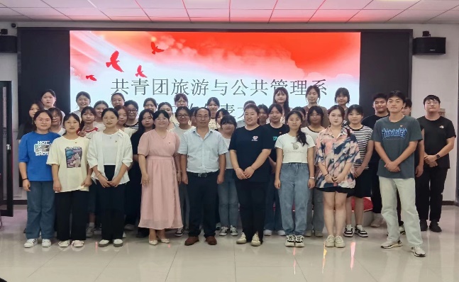 2023年9月11日下午四點,共青團旅遊與公共管理係第二次代表大會在其昶樓旅遊實訓室勝利召開。旅管係黨支部書記汪庭才同誌、組織委員施琪同誌、各基層團支部團員代表及青年教工代表參加會議。旅管係黨支部書記汪庭才同誌做重要講話,會議由旅管係團總支書記倪潔老師主持。