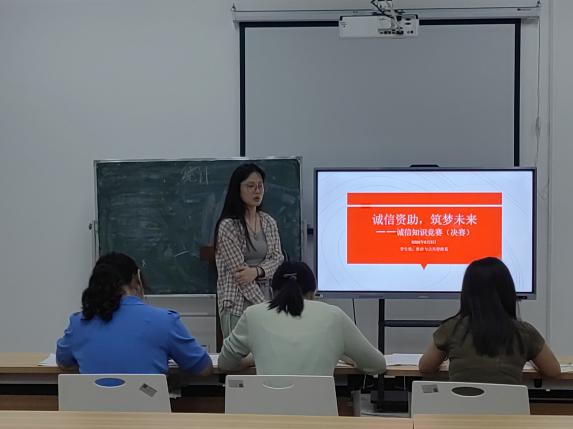 為培育學生的誠信意識,營造誠實守信、勇於擔當的校園氛圍,推進誠信教育與金融知識普及教育,引導廣大青年學生珍惜信用、理性借貸、不負信任,提高學生誠信意識、金融意識、風險意識、法律意識,增強當代大學生的責任感,助力學生樹立正確的消費觀和價值觀,2024年6月3日,學生處與我係在一站式社區共同舉辦了“誠信校園行”知識競賽(決賽)。經過初賽入圍的24位同學匯聚一堂,展開了一場精彩激烈的競爭。