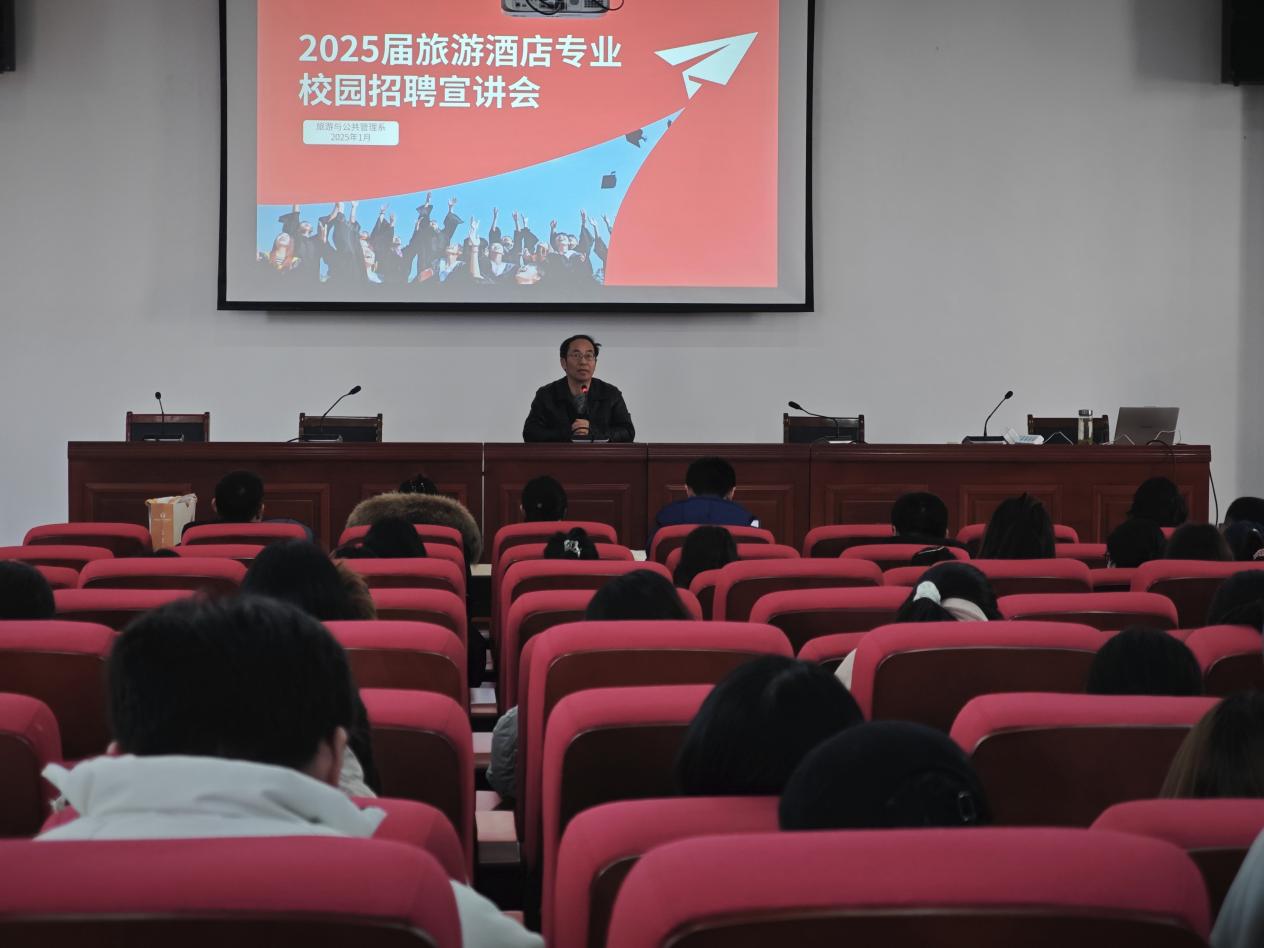 為了深入貫徹黨的二十大精神,嚴格落實黨中央、國務院關於“穩就業”“保就業”決策部署,旅遊與公共管理係積極搭建畢業生與用人單位雙向選擇對接平台,持續做好2025屆畢業生就業工作,推動畢業生高質量充分就業。12日下午,旅遊與公共管理係在其昶樓報告廳組織開展了旅遊管理及酒店管理與數字化運營專業2025屆畢業生專場招聘會