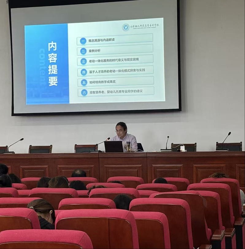 季教授的報告深入淺出:既有理論研究方麵的建樹又有實踐方麵的成就,更有對未來發展的科學謀化,對我省未來“老幼一體化”社區管理供了方向。也必將對我校這兩個專業的發展產生深遠影響。在場師生紛紛表示要認真學習,紮實研究,為“老幼一體化”事業貢獻关键词2的智慧與力量。