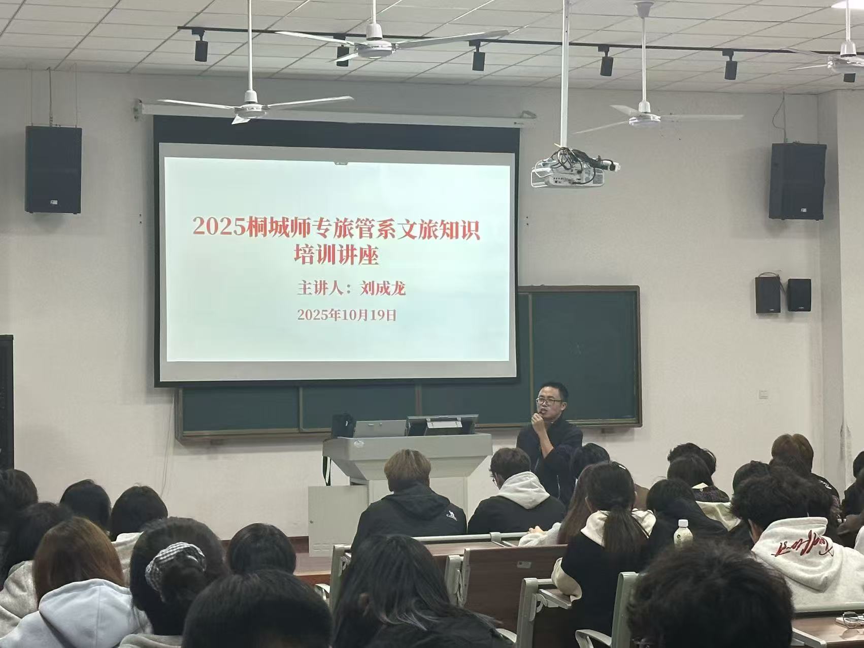 2025年10月19日,由旅遊與公共管理係主辦的桐城文旅知識講解培訓講座在以智樓報告廳舉行。本次講座由旅遊與公共管理係劉成龍老師擔任主講,圍繞桐城的曆史文化、名勝逸事及研學知識展開係統講解,旨在提升旅遊管理專業學生的專業素養與服務能力,進一步推動桐城文旅融合發展。