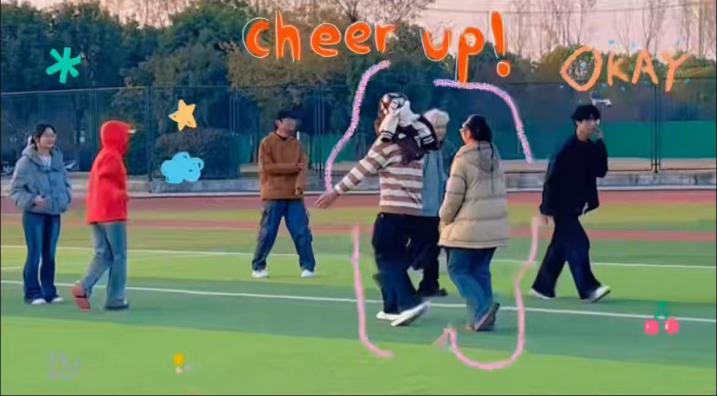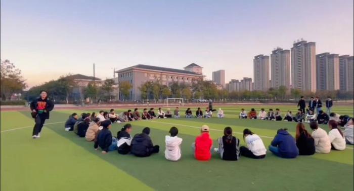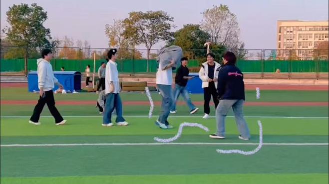蒙眼抓人環節結束後,丟手絹遊戲無縫銜接。同學們迅速圍坐成一個大圓圈,伴隨著歡快的歌聲,手持手絹的同學在圈外快速奔跑,時而突然停下將手絹丟在同伴身後,時而故意放慢腳步製造懸念。被選中的同學立刻起身追趕,奔跑的身影、緊張的呼喊、成功逃脫後的歡呼交織在一起,每一個人都沉浸在純粹的快樂中。大家不分彼此,積極參與,陌生的同學漸漸熟悉,熟悉的同學愈發親密,圓圈裏的笑聲傳遍了整個操場。
