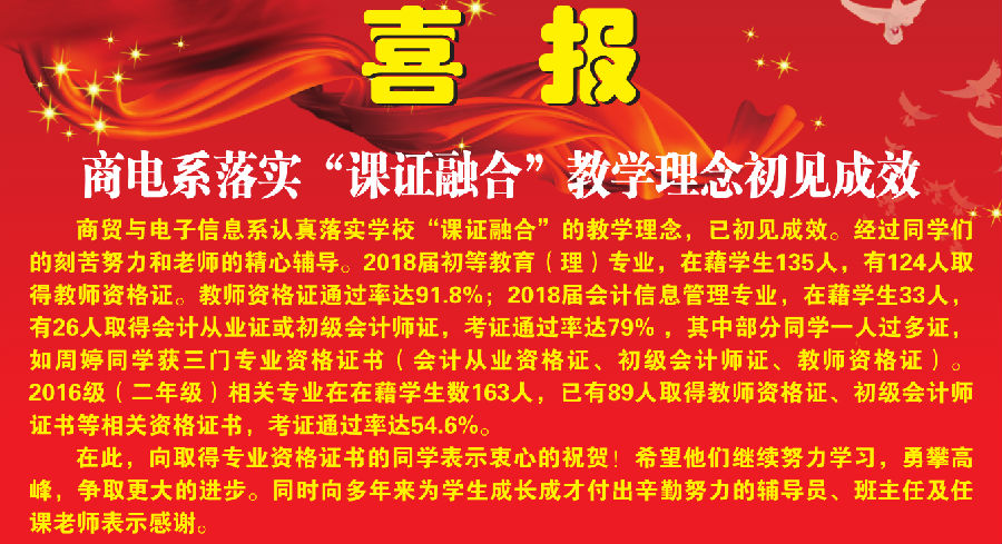 喜報:我係落實學校“課證融合”教學理念初見成效