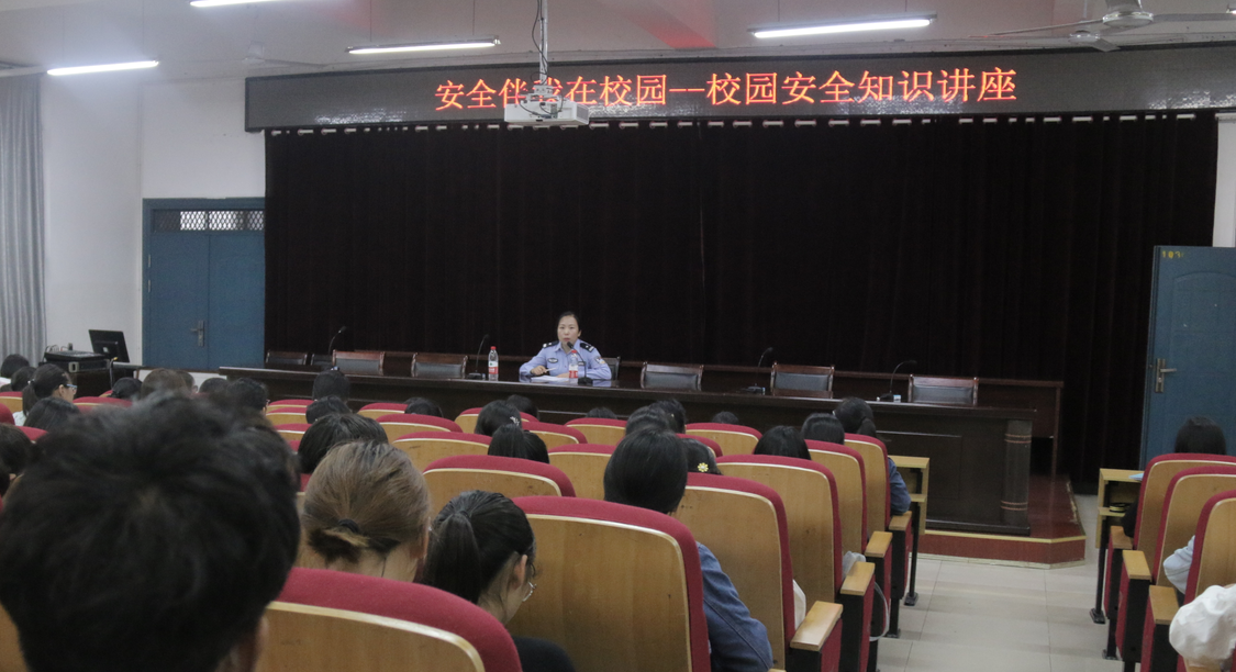 為深入貫徹習近平總書記關於安全生產的重要論述,在廣大師生中全麵普及校園安全知識,增強我校師生的校園安全意識,提升學校師生的主動防範能力,10月15日下午,由校學生處、保衛處主辦,商貿與電子信息係承辦的“安全伴我在校園——校園安全知識講座”在以智樓一樓報告廳舉行。講座由桐城市公安局警官方麗主講,商貿與電子信息係副主任王煥庭主持。保衛處朱振芳老師和我係近兩百名新生聆聽了講座。