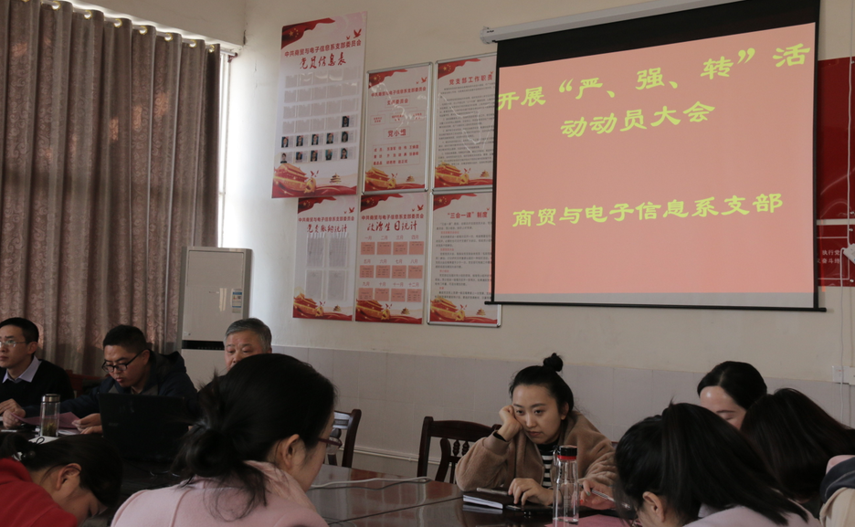 商貿與電子信息係召開支部黨員大會,部署動員“嚴規矩、強監督、轉作風”集中整治形式主義官僚主義專項行動。會議由黨支部書記蘇澤軍主持,支部全體黨員參加會議。  會上黃�同誌帶关键词2學習中共中央《關於加強黨的政治建設的意見》支部書記蘇澤軍傳達了校黨委《關於開展“嚴規矩、強監督、轉作風”專項工作方案》,並對全係展集中整治形式主義官僚主義專項行動進行了動員和部署。 最後蘇澤軍書記強調了以下幾點: 1、開展“嚴強轉”專項行動是深入學習貫徹習近平新時代中國特色社會主義思想的具體行動,是即將開展的“不忘初心、牢記使命”主題教育的重要內容,是落實“三嚴三實”,深化“三查三問”的重要抓手,是深入推進黨風廉政建設的重要舉措。大家要充分認識開展專項行動的必要性和重要性,按照學校黨委印發的行動方案、精心組織、真抓實改。 2、要提高思想認識,壓緊壓實責任。各個黨員特別是黨員幹部要以“三嚴三實”的作風,把集中整治形式主義、官僚主義擺在突出位置來抓,係部負責人要帶頭查擺問題、轉變作風。要強化務實舉措,精心組織實施。專項行動要堅持“學、查、改、立”一體推進,切實做到聯係實際深入“學”,以下看上精準“查”,以上帶下徹底“改”,舉一反三長久“立”,聯係商電係實際,抓好專項行動。要嚴明紀律規矩,強化監督問責。要弘揚嚴實作風,推動幹事創業。要把“嚴強轉”專項行動與係部專業建設和學科建設和工作有機融合。