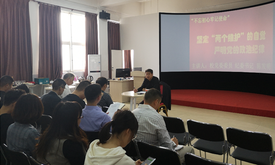 10月14日,商貿與電子信息係黨支部在開展“不忘初心 牢記使命”主題活動中,校黨委委員、紀委書記陳發明同誌到商貿與電子信息係給全體黨員和黨員發展對象上了一堂主題為:“堅定‘兩個維護’的自覺 嚴明黨的政治紀律”黨課。