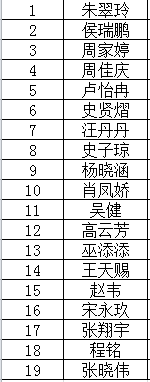 根據《桐城師範高等專科學校學生獎勵管理規定(試行)》文件精神和要求,按照優秀團員評選條件,經學生申請,班級成立評議小組,班主任(輔導員)組織學生民主評議、係部初審,擬評出我係朱翠玲等19名同學作為黨的發展對象,現將結果予以公示: