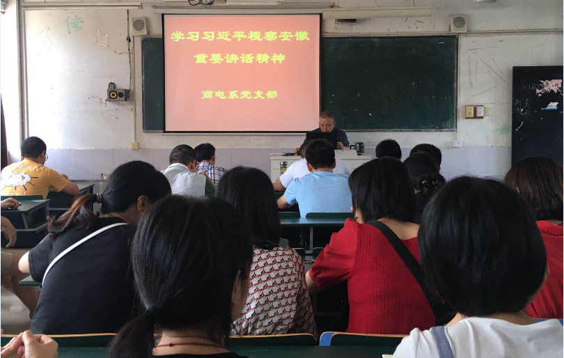 其次,由宣傳委員黃玥同誌帶領大家學習習近平視察安徽的重要講話精神和《安徽省高等學校教師師德失範行為處理辦法(試行)》。要求全體教職工要認真領會習近平視察安徽時的重要講話精神,堅持穩中求進工作基調,堅持改革開放,堅持高質量發展。特別是大家要以習近平提出的“四有”好老師為標準,爭做“四有”好教師。