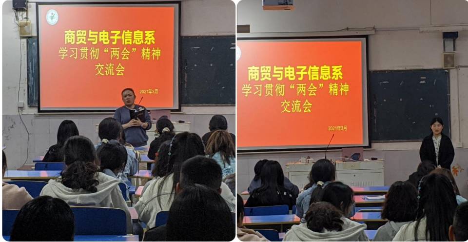 2021年3月25日晚,商貿與電子信息係團總支組織各班團支部書記學習“兩會”精神,商貿與電子信息係胡豔豔老師參加會議。