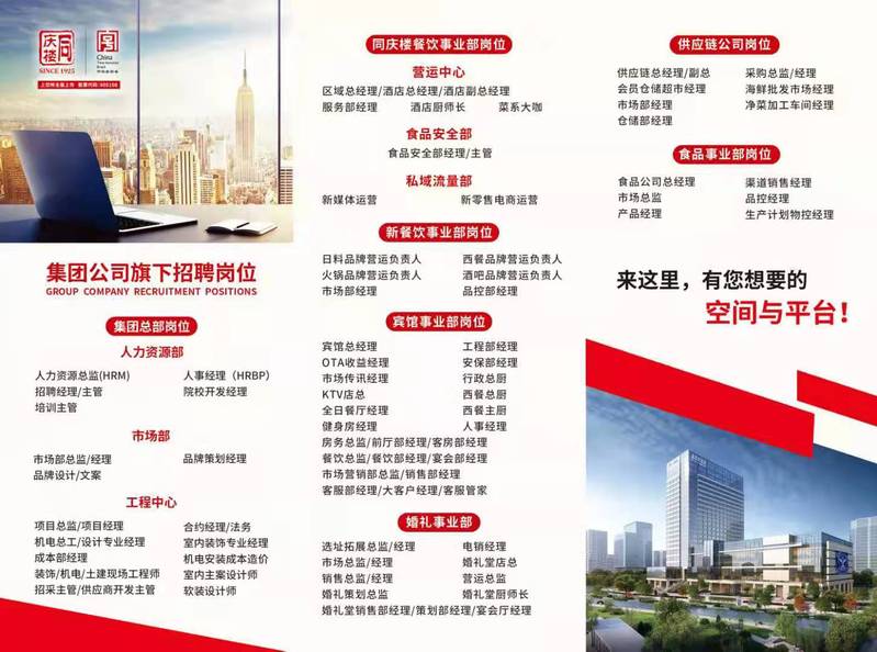 熱愛餐飲、酒店行業,認可餐飲、酒店企業發展,認同同慶樓文化,吃苦耐勞