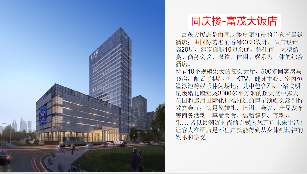 公司發展迅速,每年新開酒店眾多,現已成為長三角地區餐飲代表企業之一。根據企業戰略規劃,集團將籌建多家大型五星級酒店(合肥濱湖富茂大飯店:富茂大飯店是由同慶樓集團打造的首家五星級酒店(自建自營)有10個規模宏大的宴會大廳,595間客房與套房,配置了棋牌室、KTV、健身中心、室內恒溫泳池等娛樂休閑場地;年內還有三家星級酒店相繼開業:北城富茂花園大酒店、瑤海富茂大飯店、蕪湖鳩江富茂大飯店)需要多元化的產業人才。同慶樓集團具有悠久傳承的企業文化,成熟的培養體係,完善的晉升通道,廣闊的發展方向,並始終堅持“重視人才、培養人才、服務人才”的發展理念,熱烈歡迎並期望優秀的您加入,关键词2與企業共同成長。