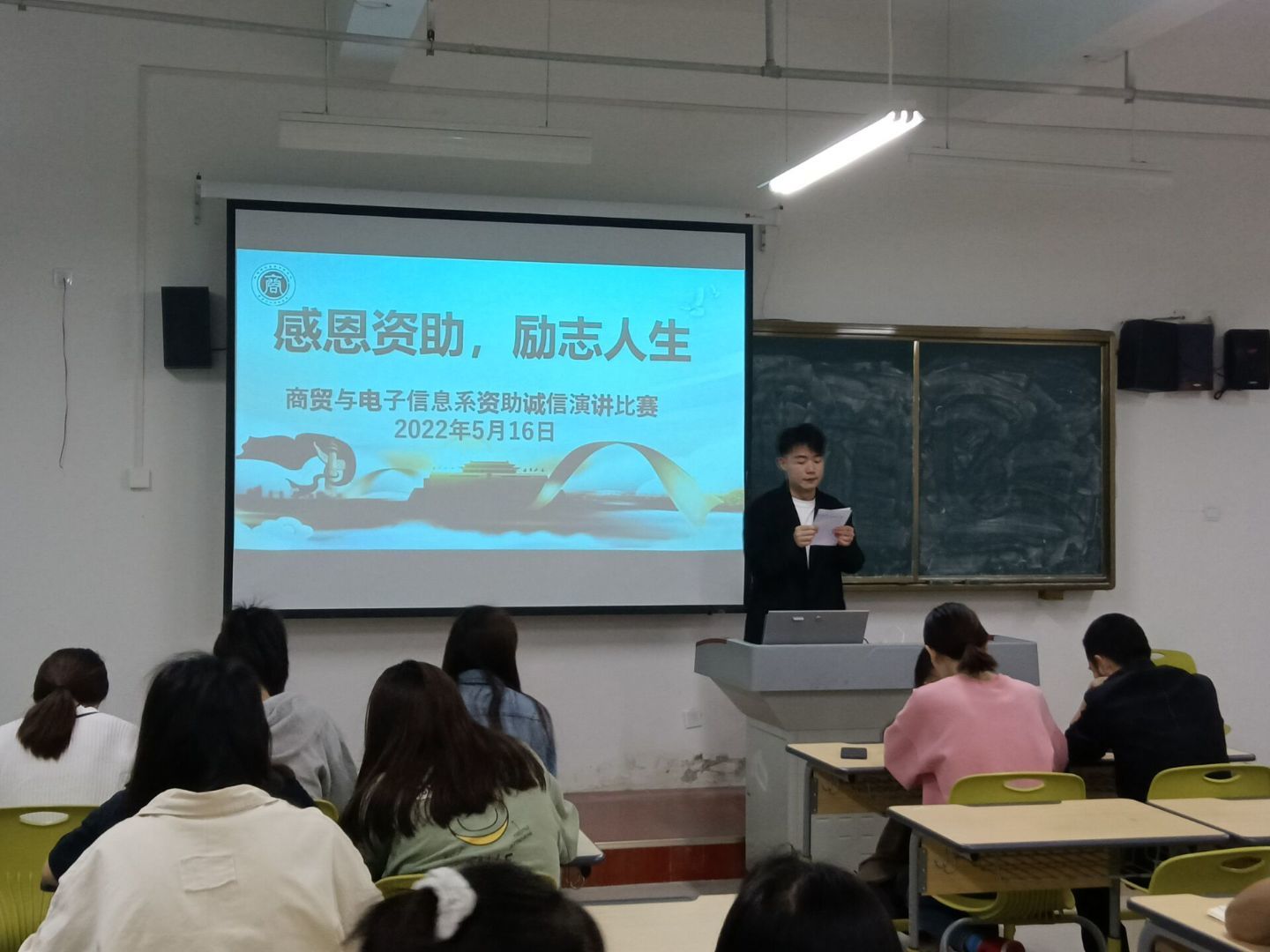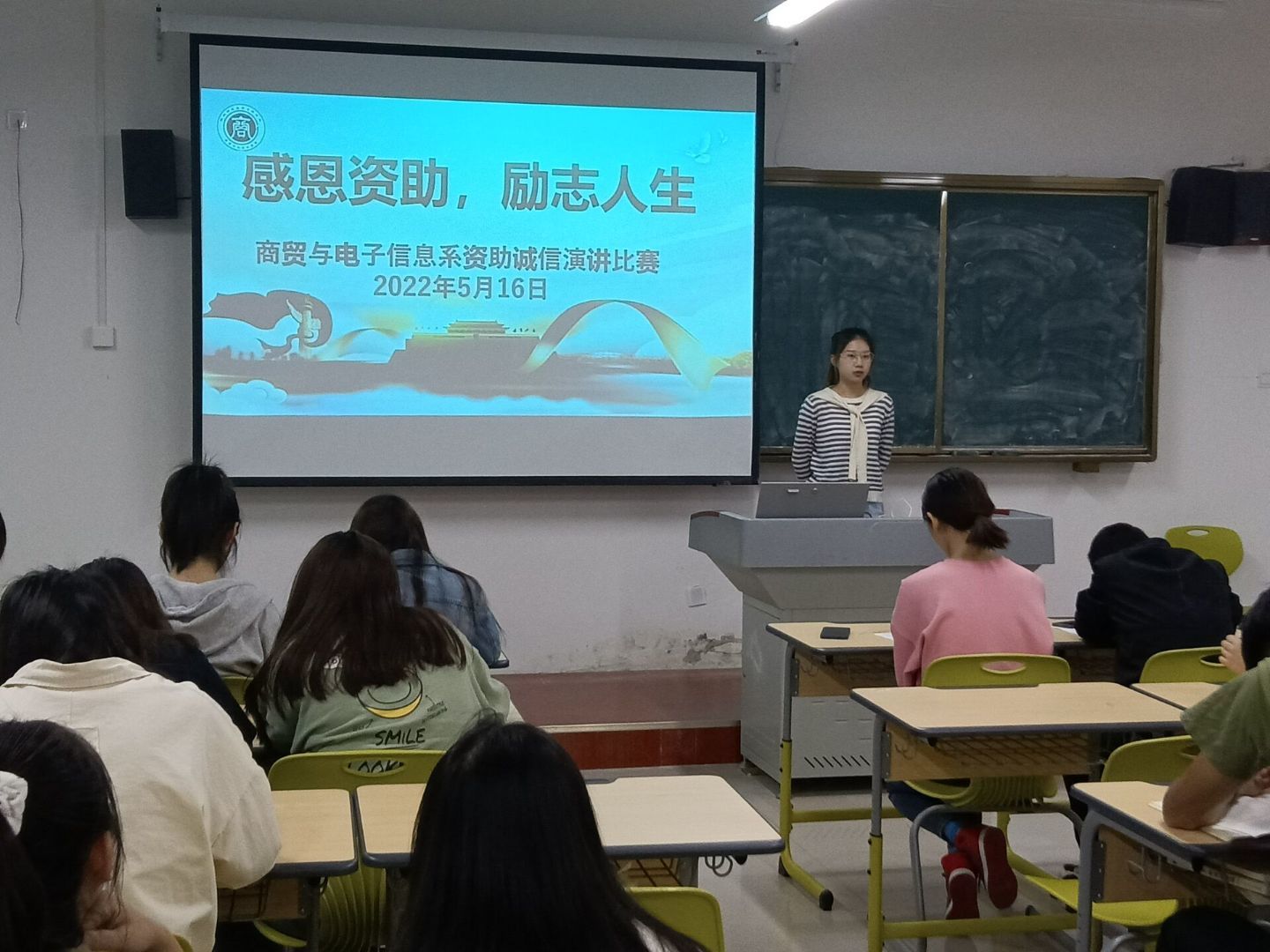 為深入宣傳黨和國家資助政策,激勵學生樹立自強自立、積極進取的誠信形象,鼓勵學生努力學習、感恩奉獻,桐城師專商貿與電子信息係於2022516日晚上七點在毓秀樓111教室舉辦以“感恩資助,勵誌人生”為主題的演講比賽。