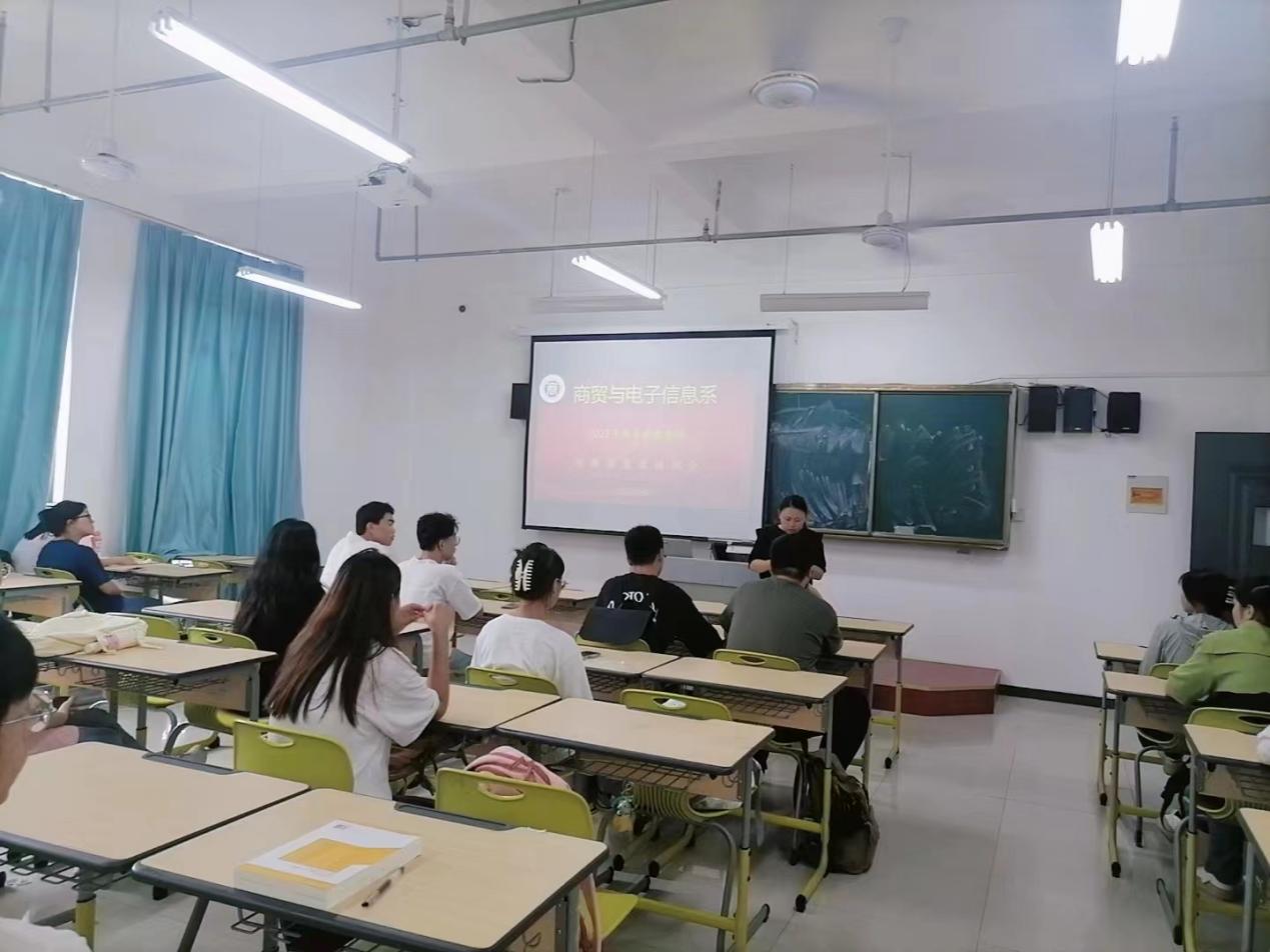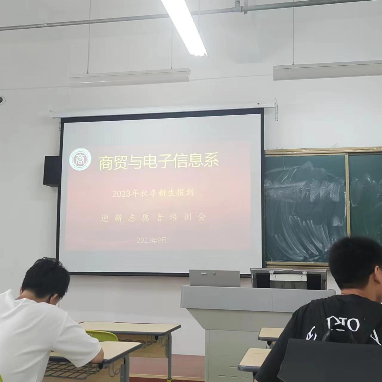 2023年9月5日上午,商貿與電子信息係於毓秀樓208教室召開本次迎新誌願者培訓會,會議由係團總支書記胡豔豔老師主持,商電係全體迎新誌願者參加。