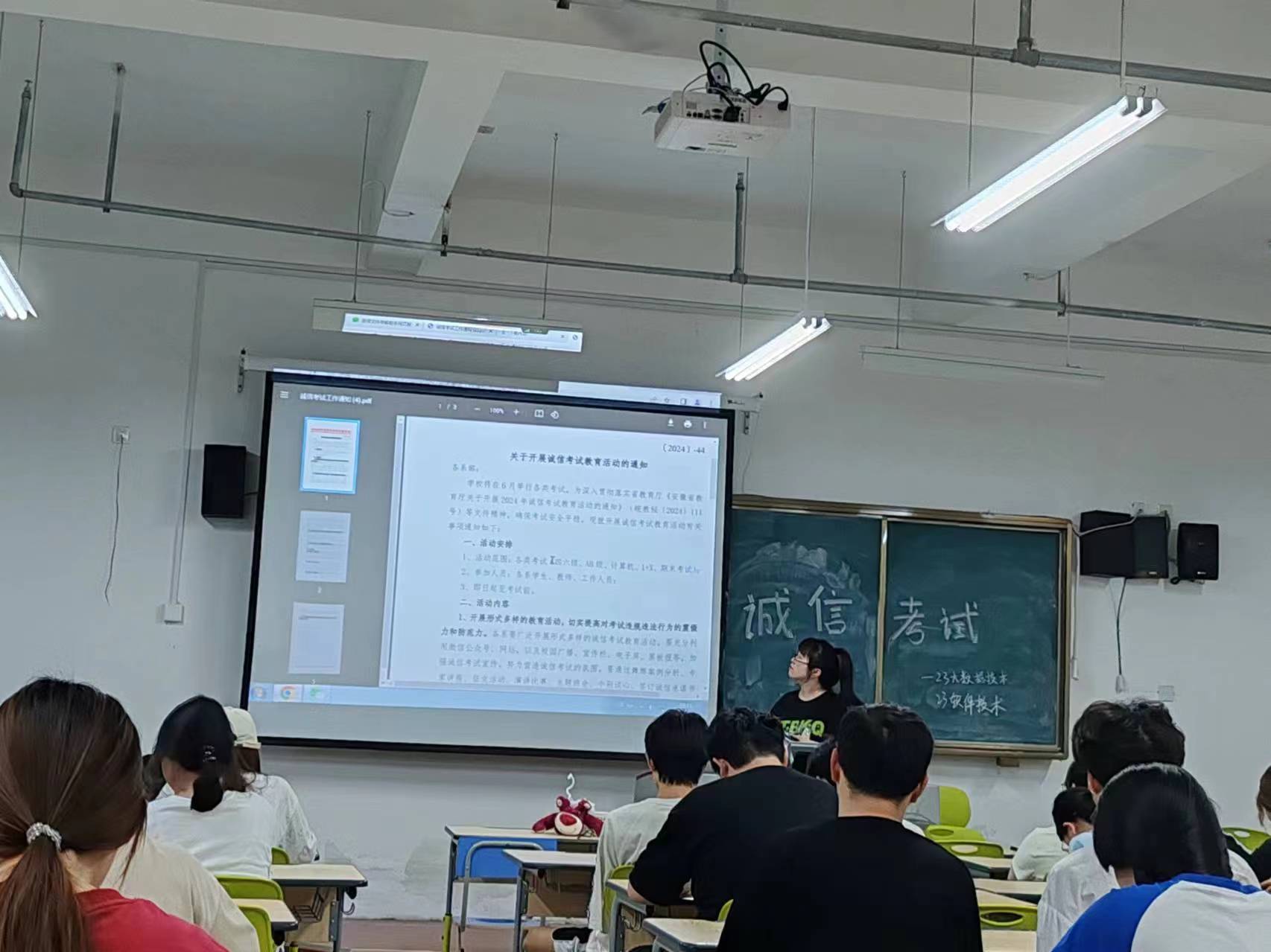 各班主持人結合實際生活和校園案例,從多方麵闡述了誠信考試的重要性和必要性,引導同學們樹立正確的考試觀和價值觀。隨後,針對學校關於嚴肅考風考紀的各項規定、考試安排、考試管理及考試準備等注意事項,各班主持人進行了詳細講述,並提醒同學們認真對待期末考試,注意規律作息,提高複習效率,科學備考。最後,輔導員為同學們講解了誠信考試的考場紀律規範,重申學校對於考場舞弊行為的嚴懲製度,加深同學們對作弊行為的嚴重後果的認識,從而使同學們端正考試態度。