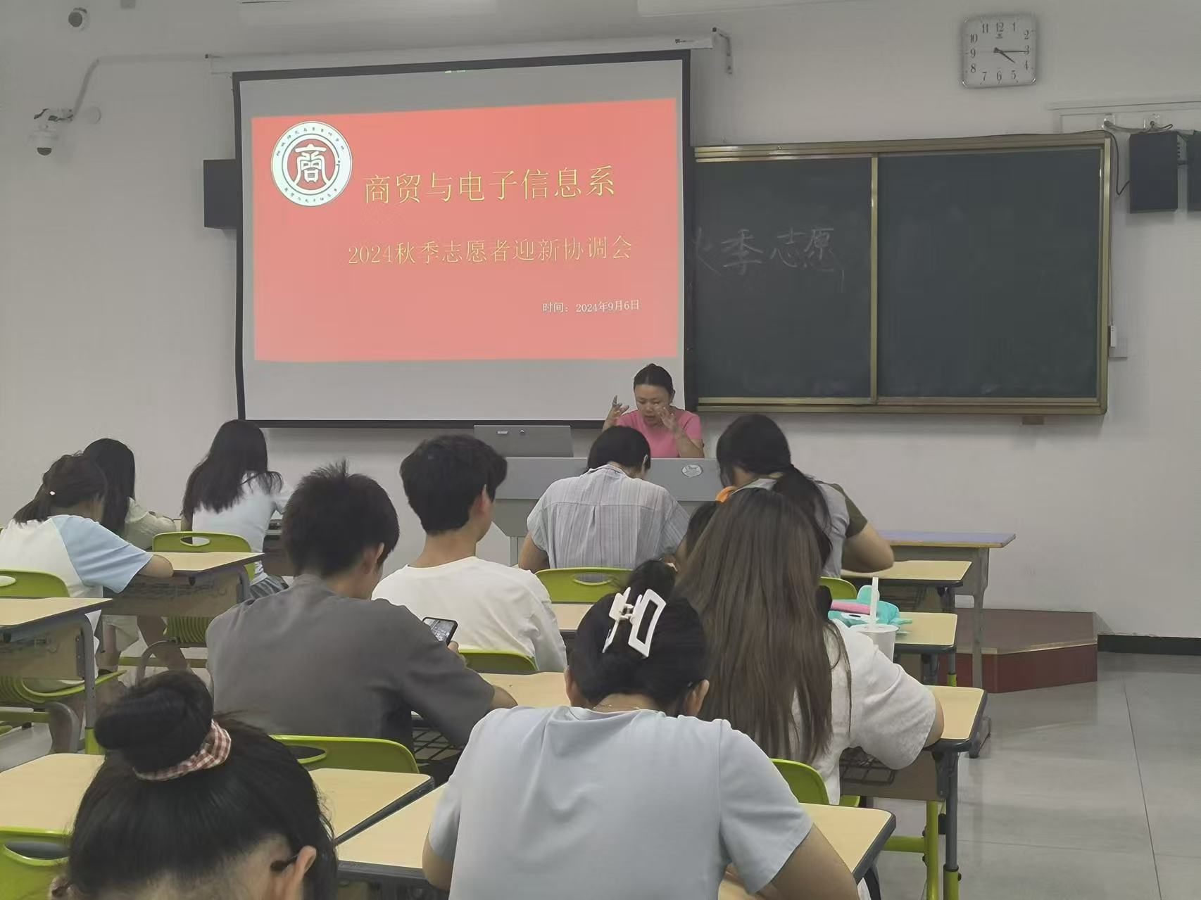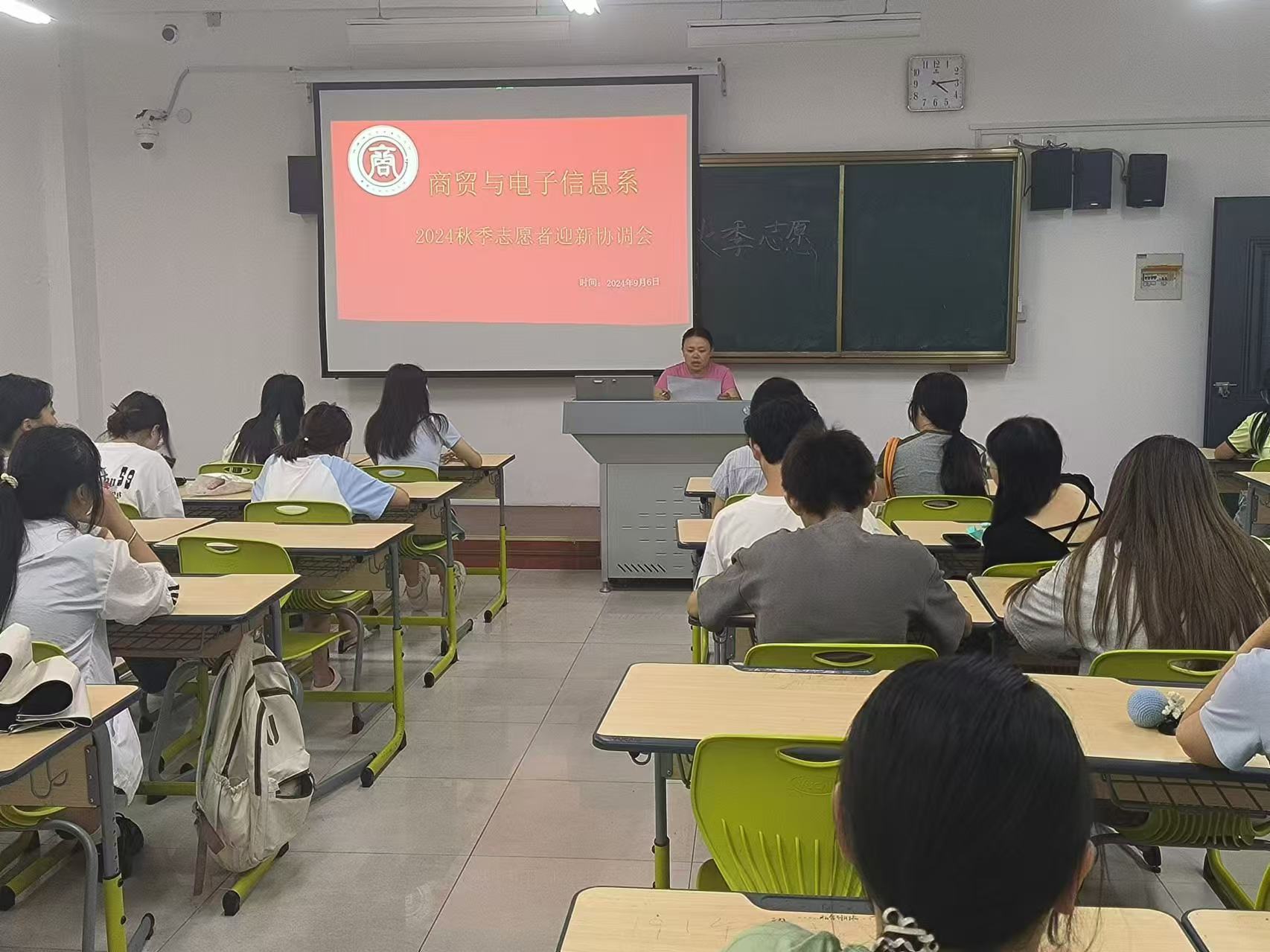 為切實做好2024年迎新工作,9月6日下午,商貿與電子信息係在毓秀樓206教室召開2024年誌願者迎新協調會,商貿與電子信息係團總支書記胡豔豔主持會議並講話,22級、23級迎新誌願者參加會議。