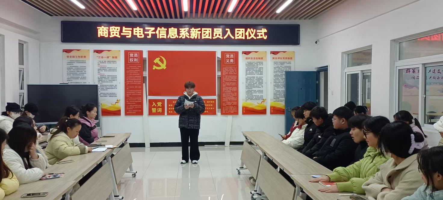 為深入貫徹黨的教育方針,強化團員的先鋒模範作用,激發他們的榮譽感,並激勵廣大青年積極追求政治進步。12月4日下午,商貿與電子信息係團總支在5-6號樓一站式社區舉行了2024年新團員入團儀式。係部團總支書記胡豔豔、團組織黨支部委員韋良東、各班級代表、2024年所有新發展團員出席儀式,儀式由團總支書記胡豔豔主持。