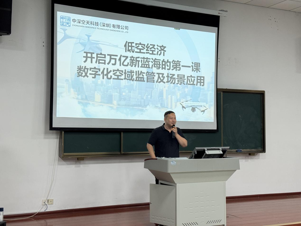 於誌偉老師引領同學們深入低空經濟的“內核”。他係統闡釋了從A類到W類的空域劃分管理體係,生動比喻為保障低空飛行安全高效的“空中交規”。隨後,講座進入硬核技術展示環節:5G-A通感一體化技術如何像“超級神經”實現通信感知“一網兩用”;中國低空網格碼如何以8字節編碼高效管理三維空間;以及數字時空底座如何通過精準的氣象與通信信號仿真,為“萬架級”無人機協同作業提供支撐,實現從“經驗飛”到“仿真飛”的跨越。豐富的行業應用案例,從智慧交警的違章自動識別到智慧應急的災後三維建模,讓同學們驚歎於技術賦能千行百業的巨大潛力。