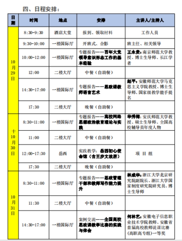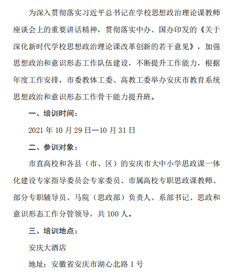 安慶市教育係統思想政治工作骨幹能力提升班日程安排