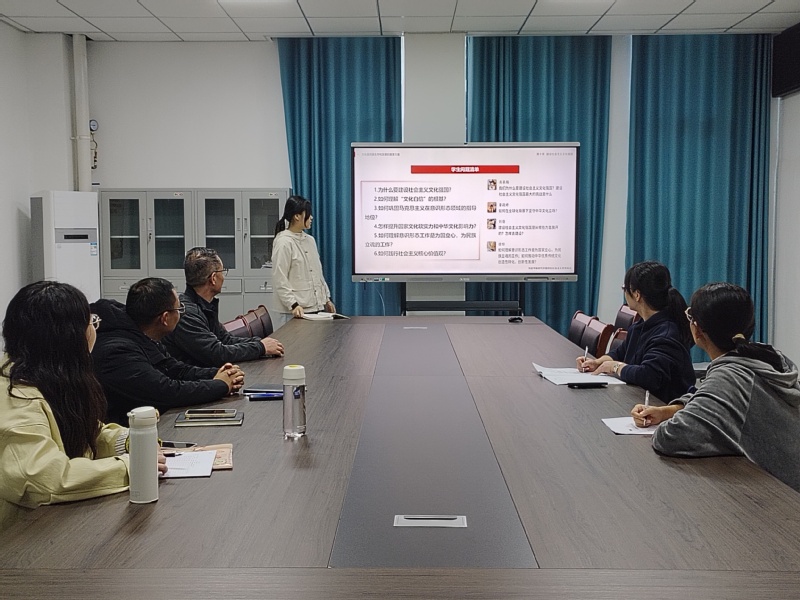 本次會議分為主講教師分享、集體討論、確定教學思路三個環節組成。會議伊始,吳耀虹老師就第十章《建設社會主義文化強國》內容分享授課思路和教學案例,並針對本章內容提出學生問題清單、教學難點和教學重點,深入淺出地講授了文化是民族生存和發展的重要力量,增強了同學們對於建設中國特色社會主義文化的認同感。隨後的集體討論中,與會教師紛紛評價課程“案例鮮活、邏輯清晰”,讓抽象的概念在具體的事例中很好地展現出來,為接下來優化本章教學設計提供了範例,圍繞本次備課主題最終確定完善了本章教學思路。