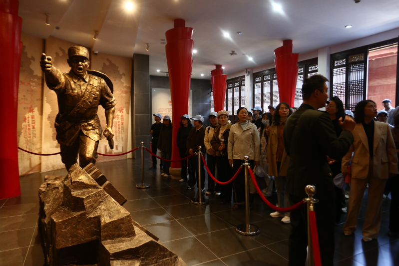“1938 年夏,新四軍軍部進駐雲嶺,在葉挺、項英等同誌的領導下,開辟了華中敵後抗日根據地,書寫了可歌可泣的抗戰史詩。” 講解員深情講述著新四軍將士 “抗戰到底” 的誓言與皖南事變中九千健兒浴血突圍的悲壯故事,師生們駐足凝視、認真聆聽,不時交流感悟。在軍部會議室,複原的會議場景讓學生們仿佛穿越到了烽火連天的抗戰年代,深刻體會到革命先輩們的戰略智慧與責任擔當。