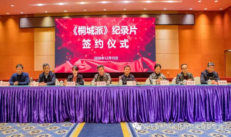 隨後,桐城市文化旅遊投資發展有限責任公司與安徽海豚真實紀錄文化傳媒有限公司和安慶市桐城文化教育發展基金會三方共同簽訂了《桐城派》紀錄片拍攝資助協議。