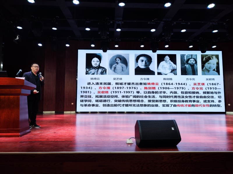 3月13日下午,文都講壇第76講暨惜抱人文講壇第33講《清末民國桐城才媛的現代轉型》在音樂廳開講。