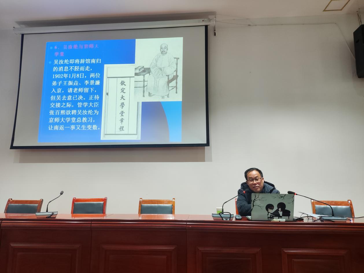 今年是吳汝綸逝世一百二十周年,此次專題講座是桐城師範高等專科學校和安徽省桐城派研究會聯合舉辦“紀念吳汝綸先生逝世一百二十周年”係列活動之一。