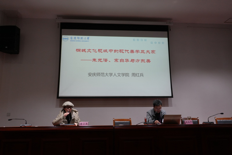 3月4日下午,惜抱人文講壇第36講在其昶樓報告廳開講,邀請安慶師範大學人文學院副院長周紅兵教授主講——桐城文化視域中的現代美學三大家--朱光潛、宗白華與方東美。校黨委書記王子龍出席,桐城派研究中心副主任唐小晶主持講座。教務處、桐城派研究中心相關人員以及200餘名學生現場聆聽講座。
