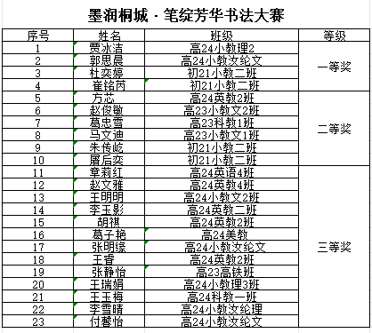 附:書法大賽成績一覽表